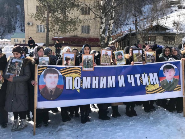 28 февраля 2023г. перед Администрацией МО "Бежтинский участок" прошёл митинг посвящённый трём значимым датам: